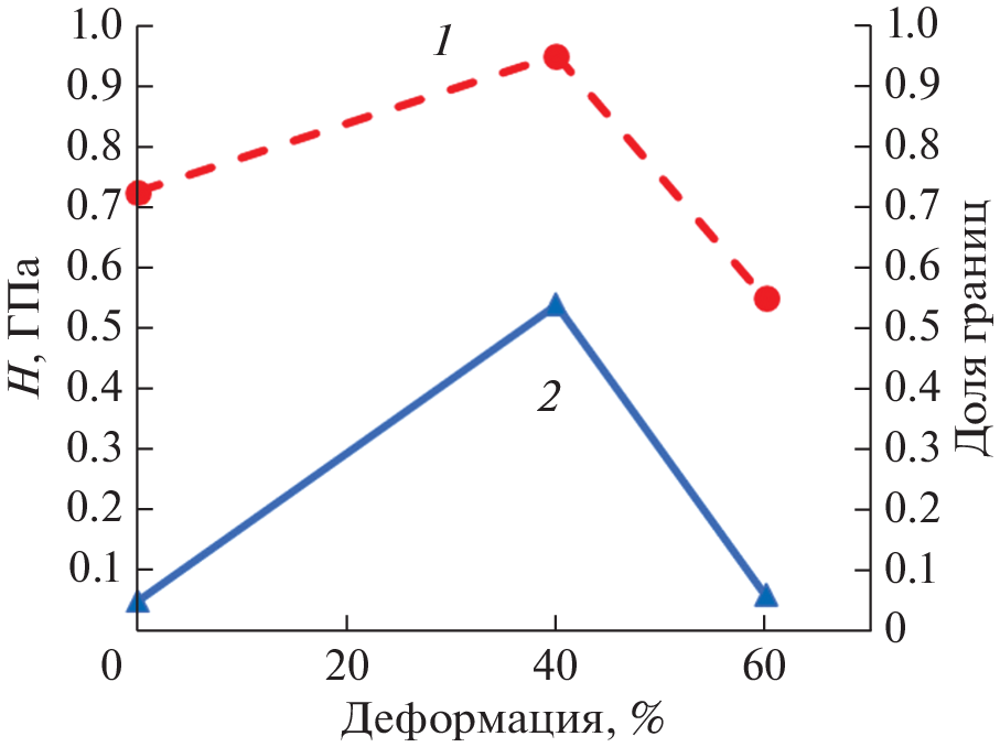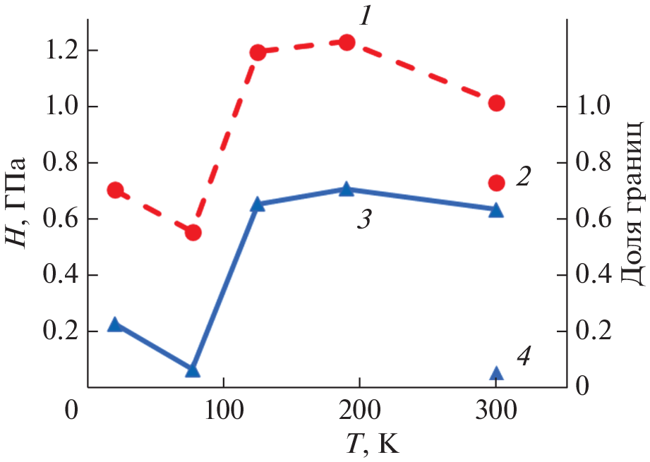 Исследованы микроструктура, механические и акустические свойства образцов меди в исходном состоянии и после барокриодеформирования в разных режимах. Показано, что криогенные температуры способствуют значительному измельчению зерен за счет активизации процессов механического двойникования, формируется однородная структура со средним размером зерна 5–8 мкм. Барокриодеформирование при температурах до 125 К приводит к снижению пластичности и значительному увеличению твердости. Дальнейшее понижение температуры, наоборот, способствует существенному увеличению пластичности, а также уменьшению твердости. Отмечена корреляция медианной частоты акустической эмиссии со значением твердости при всех температурах барокриодеформирования.