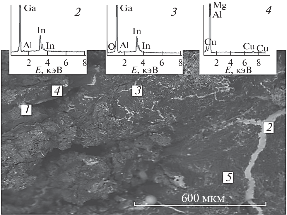Using high-resolution X-ray diffraction and synchrotron radiation, as well as and scanning electron microscopy, it has been shown that the observed high reactivity of commercial aluminum alloys activated with the Ga–In eutectic is associated with the formation of the Al–Ga–In eutectic along grain boundaries in the entire material volume. The loss of material activity during storage under atmospheric conditions is due to the oxidation of the eutectic components. Activation with pure gallium leads to formation of AlGax solid solution, which has low activity in the reaction with water under neutral pH.