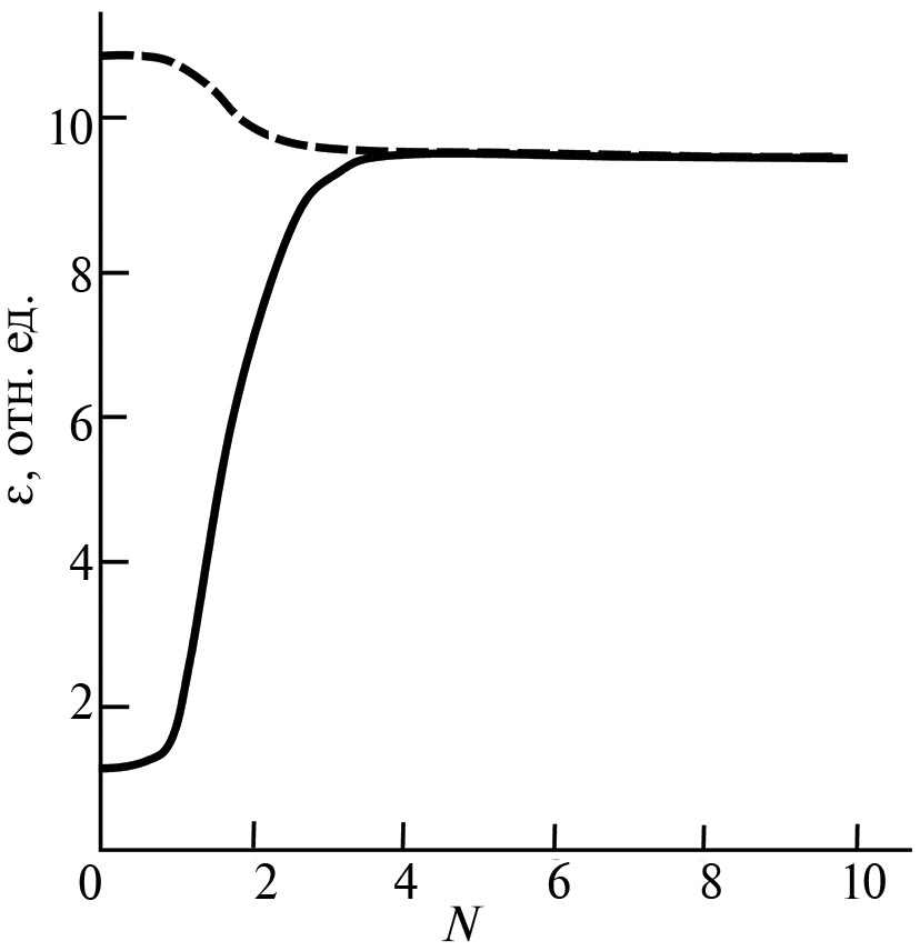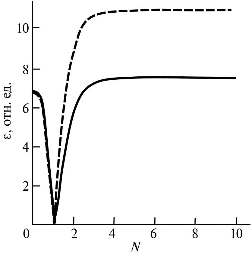 где q – структурный параметр порядка (изменение одного из линейных размеров элементарной ячейки), φ – плотность дефектов, M – момент кручения, направленный по оси z, α, β, γ, θ – феноменологические константы, слагаемое с коэффициентом γ3 описывает флуктуации распределения компонент тензора деформации, Φ1 – вид этого слагаемого, зависит от поставленной задачи и будет конкретизирован позже. Как показано в [10], зависимость величины момента от числа оборотов N описывается функцией гиперболического тангенса. Конкуренция слагаемых в круглых скобках обеспечивает появление длиннопериодической структуры при наложении кручения под высоким давлением.