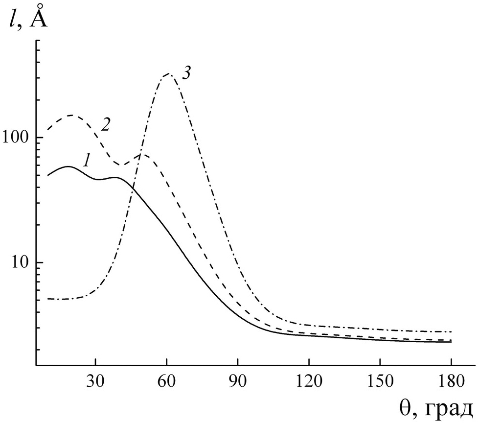 Используя зависимость dmin(Ee), можно оценить среднюю длину траектории электрона l(E, θ) – от места его рождения в ионизационном столкновении до момента его замедления (Ee = Emin). Эту величину можно вычислить путем усреднения по спектру электронов при угле вылета θ: