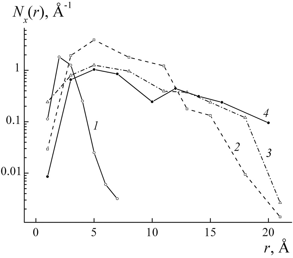 Радиальное распределение количества электронов по слоям Nx(r) можно качественно характеризовать параметрами, определяющими положение rmax и величину максимума Nxmax(Xmax), и параметром r∞, определяющим радиальную границу зоны регистрации: