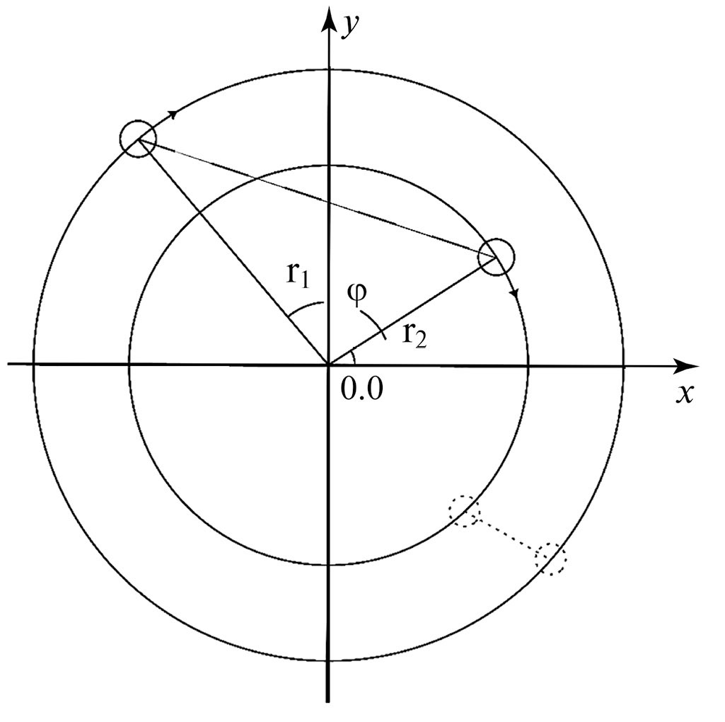 Аналогичным образом восстанавливают структуру остальных подсистем, после чего проводят их “стыковку”. Все подсистемы имеют общий центр (поглощающий атом в нуле координат), поэтому мы можем осуществлять их попарное объединение, для этого фиксируем одну из подсистем, например, A, а вторую подсистему вращаем как единое целое относительно начала системы координат (рис. 4), решая задачу оптимизации функции невязки для гистограммы парных расстояний атомов типов A–B. Данную процедуру повторяем для всех оставшихся подсистем.
