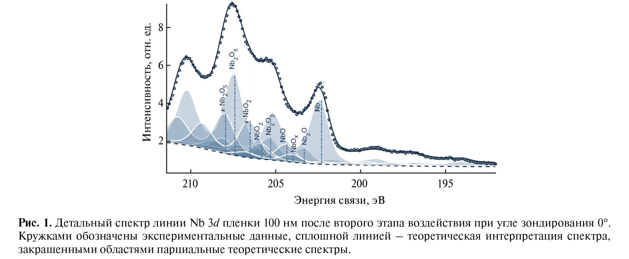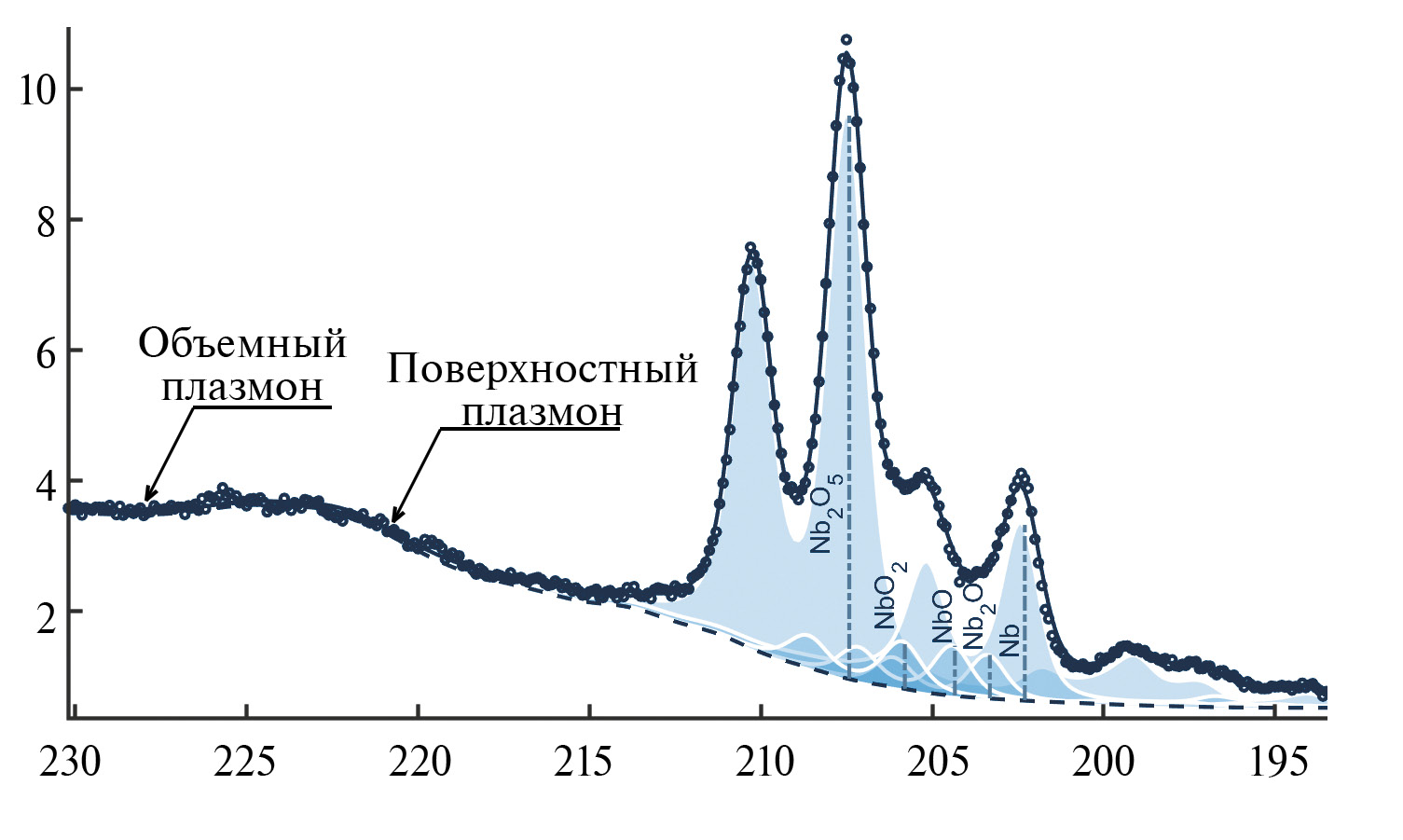 Фазовый состав поверхности определялся из обработки рентгеновских фотоэлектронных спектров линии Nb 3d. Для достоверности представленных результатов анализа выполнено разложение линии O 1s.