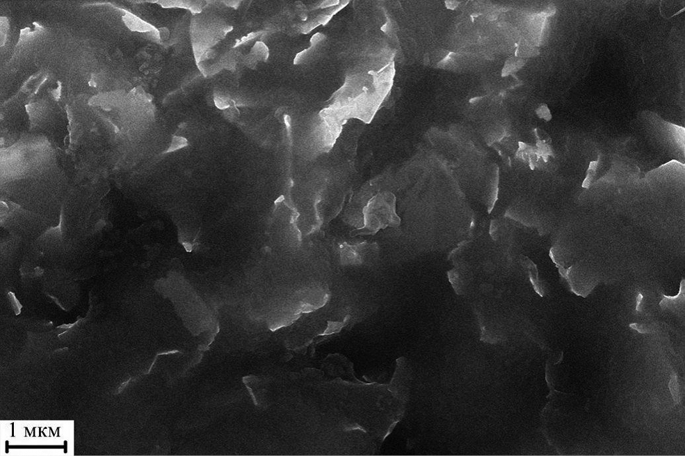 Рис. 5. РЭМ-изображение поверхности образца пленки Ф-42, наполненного 5 мас. % нанографита.