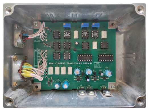 Название “трансформатор тока пучка” связано с тем, что конструкция ИДТ имеет характерный вид трансформатора, в котором пучок, проходящий сквозь сердечник тороидальной формы из материала с высокой магнитной проницаемостью, играет роль “первичной обмотки”, а N витков изолированного провода, намотанные вокруг сердечника, являются “вторичной обмоткой” трансформатора. Таким образом, измеряемый сигнал в обмотке создан переменным магнитным полем, формируемым током пучка, и представляет собой переменное напряжение, частота которого равна частоте следования импульсов тока пучка ускоренных частиц, а для проведения точной абсолютной калибровки датчика использован дополнительный одиночный виток для подачи известного значения тока, имитирующего ток пучка. Наличие тороидального сердечника, в котором замыкаются линии магнитного поля, позволяет также измерять только азимутальную составляющую поля тока пучка, в результате чего величина сигнала оказывается слабо зависящей от размера и положения пучка, проходящего сквозь ИДТ.
