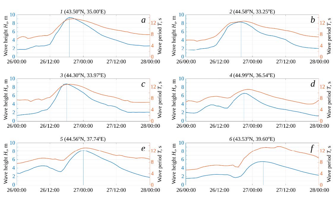 - during the November 2023 storm in the Black Sea, the maximum wave heights and maximum wave periods exceeded 9 m and 13 s, respectively;
