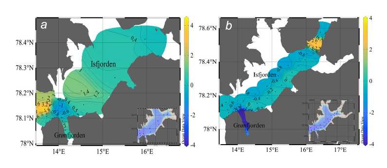 At the same time, there are very few measurements of biogeochemical structure parameters of waters and the carbonate system carried out directly in Isfjorden itself, and all of them relate to the summer period [12, 13]; such measurements for Grønfjorden and Billefjorden are absent.