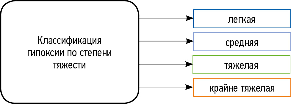 Общепринятая классификация гипоксии (рис. 1–3) основывается на различии в происхождении, патогенезе, степени тяжести и распространенности, а также скорости ее развития [7].