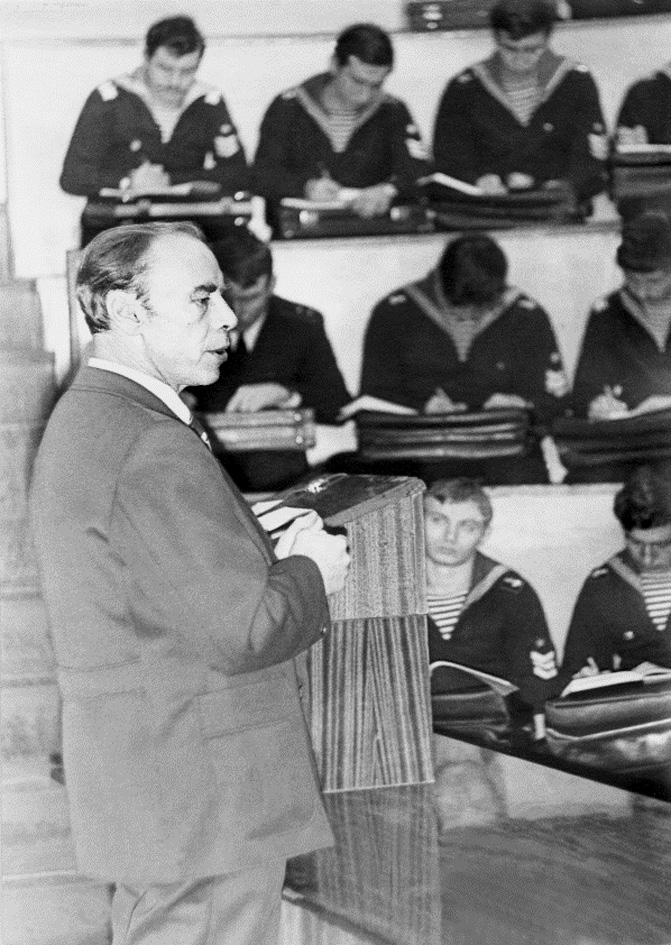 Fig. 9. V.M. Vinogradov gives a lecture to cadets of the Military Medical Academy, 1981