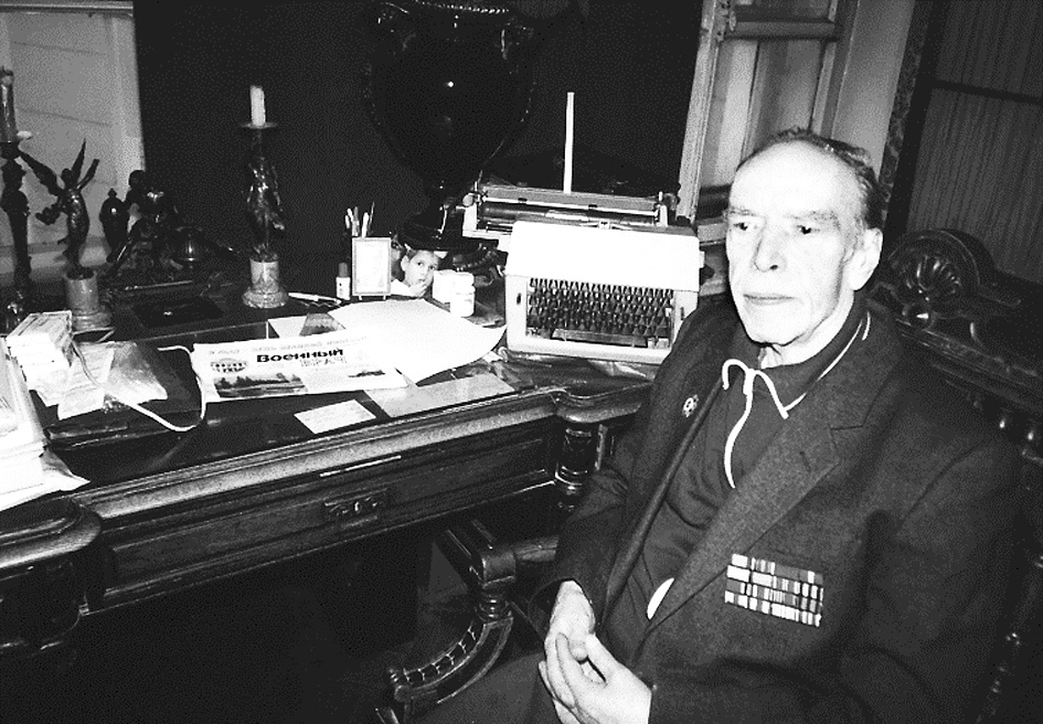 Fig. 12. At a desk in his apartment on the Millionnaya street (previously Khalturina street) (2000)