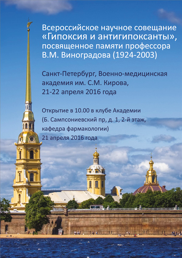Fig. 14. Information announcement about the first workshop “Hypoxia and antihypoxants”, dedicated to the memory of V.M. Vinogradov (2016)