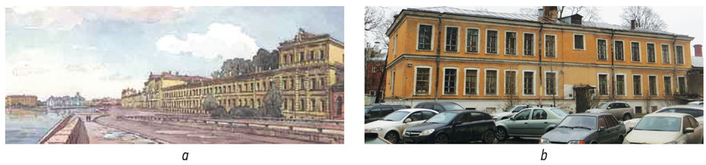 Рис. 1. a — Здание Естественнонаучного института, где располагалась кафедра фармакологии до 1926 г.; b — Здание кафедры фармакологии (ул. Боткинская, 17), в котором она располагалась с 1966 г. (фото 1999 г.)