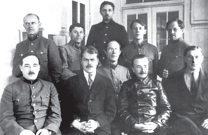 Fig. 4. S.V. Anichkov with the staff of the department. Sitting in the first row from left to right: M.P. Nikolaev, S.V. Anichkov, V.V. Zakusov, Sr., father of V.V. Zakusov, Jr., future academician of the USSR Academy of Medical Sciences and the first director of the Research Institute of Pharmacology of the USSR Academy of Medical Sciences; the photo was taken in 1926
