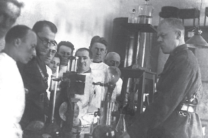 В 1956–1959 гг. кафедрой руководил Николай Васильвич Лазарев (1895–1974) — выдающийся фармаколог, основоположник современного этапа развития отечественной промышленной токсикологии, а также ряда новых направлений в естествознании и медицине, создатель крупнейшей научной школы (рис. 10). Н.В. Лазарев родился 19 ноября (2 декабря) 1895 г. в Царском Селе в семье истопника царских дворцов. В возрасте 4 лет потерял отца, воспитывался в семье сестры матери в Санкт-Петербурге. Окончил реальное училище. С 1913 г. работал железнодорожным служащимени В 1916 г., пройдя кратковременные курсы первой медицинской помощи, вступил в один из передовых полевых отрядов Красного Креста Юго-Западного фронта. Во время гражданской войны служил в Первой Конной армии в должности лекпома (помощника врача) санитарного поезда. В 1921 г. решением штаба армии был откомандирован для продолжения медицинского образования и поступил на медицинский факультет Екатеринославского университета. В 1922 г. перевелся в Киевский медицинский институт, причем сразу на 3-й курс после досдачи отдельных экзаменов, и активно включился в работу научного кружка, которым руководил известный патолог, микробиолог и радиобиолог профессор Алексей Антонинович Кронтовский (о нем см. далее). В 1925 г. по окончании института Н.В. Лазарев стал его ассистентом в отделении биологии и экспериментальной медицины Киевского рентгенологического института. В 1928 г. вернулся в Ленинград и возглавил токсикологическую группу в лаборатории завода «Красный треугольник». Вскоре заводскую лабораторию передали в Институт гигиены труда и техники безопасности, а Н.В. Лазарева назначили ее заведующимени В 1932 г. он по совместительству стал также заведующим токсикологической лаборатории Института по изучению профессиональных заболеваний, а через 2 года лаборатории были объединены под руководством Н.В. Лазарева (до 1953 г.) в составе Института гигиены труда и профессиональных заболеваний. По совместительству (с 1935 по 1941 г.) он заведовал отделом фармакологии Ленинградского научно-исследовательского химико-фармацевтического института и кафедрой санитарно-химической защиты Ленинградского института усовершенствования врачей.