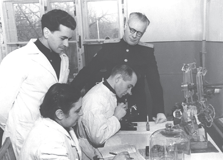 В эти годы под руководством Н.В. Лазарева чрезвычайно активно велись исследования, имеющие большое практическое значение для нормирования труда на вредных, в том числе военных, производствах. В 1936 г. Н.В. Лазареву была присуждена ученая степень доктора медицинских наук по совокупности изданных научных работ, а в 1938 г. присвоено ученое звание профессора. В 1941 г. он был призван на действительную военную службу и назначен начальником кафедры фармакологии ВММА. С этого периода началась его интенсивная деятельность в качестве педагога и ученого-фармаколога (рис. 11). В 1956 г. в связи с упразднением ВММА Н.В. Лазарев возглавил кафедру фармакологии, фармации и фармакогнозии ВМА имени С.М. Кирова. В эти годы его научные интересы были сосредоточены в основном на создании, изучении и внедрении в практику новых производных пурина и пиримидина, а также адаптогенов. В 1959 г. он перешел в Научно-исследовательский институт онкологии имени Н.Н. Петрова и до 1970 г. возглавлял экспериментальную лабораторию профилактики и терапии рака. В 1947 г. был удостоен почетного звания заслуженного деятеля науки РСФСР. Являлся почетным членом Чехословацкого научного медицинского общества имени Пуркинье, членом правления Всесоюзного общества физиологов, биохимиков и фармакологов. Умер 18 июля 1974 г. [20].