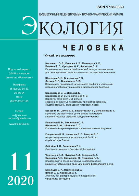 В Сибирском федеральном округе (СФО) высокий уровень урбанизации (73,1 %). В СФО входит 12 субъектов с городами-административными центрами: Барнаул, Красноярск, Абакан, Горно-Алтайск, Кызыл, Улан-Удэ, Чита, Иркутск, Кемерово, Новосибирск, Омск, Томск. В них проживало 38,4 % населения, находилось 58,7 % предприятий и организаций округа. Цель исследования - анализ заболеваемости злокачественными новообразованиями (ЗНО) населения административных центров СФО. Методы. Использованы данные статистических форм № 7 «Сведения о заболеваниях злокачественными новообразованиями» по административным центрам и сведения о половозрастном составе населения с 2004 по 2018 г. Результаты. В 2018 г. в городах зарегистрировано 31 636 заболевших - 39,6 % от всех ЗНО округа. Первые места в структуре онкологической заболеваемости среди мужчин занимают рак легкого (16,3 %), предстательной железы (12,5 %), кожи с меланомой (12,1 %), колоректальной зоны (11,7 %), желудка (7,1 %), среди женщин - опухоли молочной железы (21,5 %), кожи с меланомой (17,3 %), колоректальной зоны (11,5 %), тела (6,4 %) и шейки матки (5,0 %). Показатели заболеваемости новообразованиями кожи и предстательной железы у мужчин и молочной железы у женщин выше, чем в целом по СФО. За 15 лет наблюдался рост стандартизованных показателей (СП) заболеваемости ЗНО в СФО на 6,0 % с 271,0 до 287,2 %000 с наибольшим приростом в г. Улан-Удэ, Чите, Красноярске и Омске на 13,6-23,8 %. Кумулятивный риск заболеть ЗНО жителей административных центров вырос с 34,1 % в 2004-2008 гг., до 35,9 % в 2014-2018. По прогнозу СП заболеваемости в городах может возрасти до 307,4 %000. Выводы. Жители административных центров имеют повышенный риск заболеть ЗНО. Показатель заболеваемости рос как в целом по СФО, так и в отдельных городах. По прогнозу данная ситуация сохранится до 2025 г.