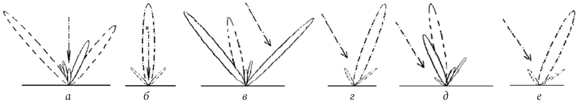 На рис. 5 ДОР соответствуют углам падения 0°, 21° и 29°.