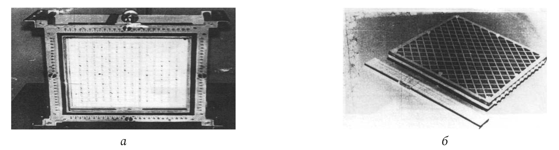 Рис. 7. Макеты КГС в виде плоской СНС смешанного типа с перестраиваемыми толщинами слоев (а) и плоской СНС отражательного типа с постоянными (не перестраиваемыми) параметрами (б)