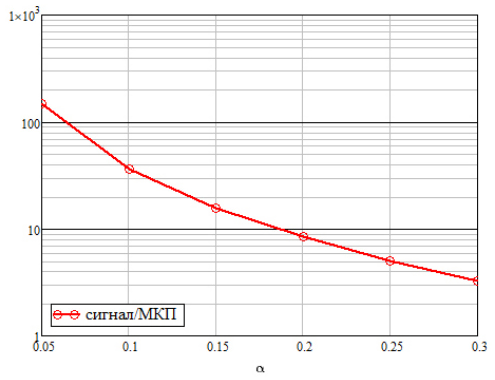 Рис. 4. Зависимость отношения мощностей сигнал/МКП и
