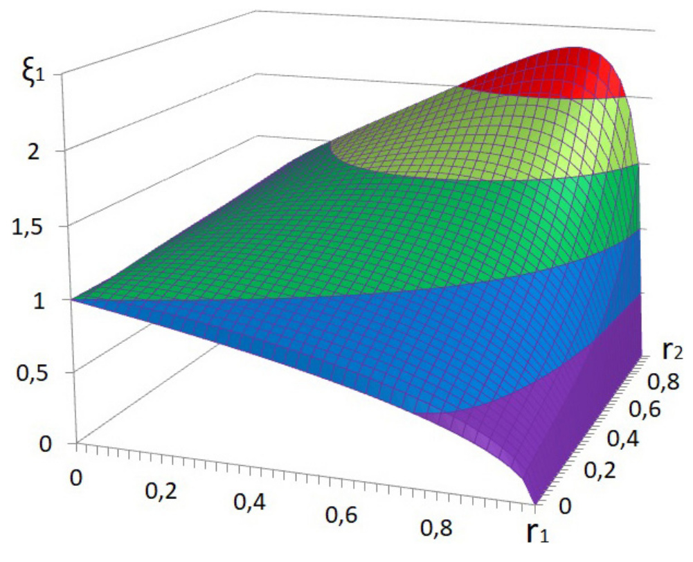 На рис. 1 приведен график зависимости параметра от коэффициентов отражения зеркала связи и сферических зеркал.