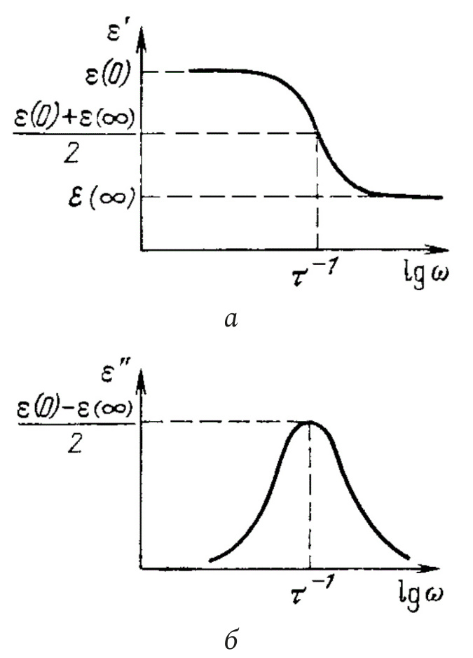где e(0) и e(¥) – значение относительной диэлектрической составляющей на постоянном токе и бесконечно большой частоте соответственно, t – постоянная времени (рис. 8).