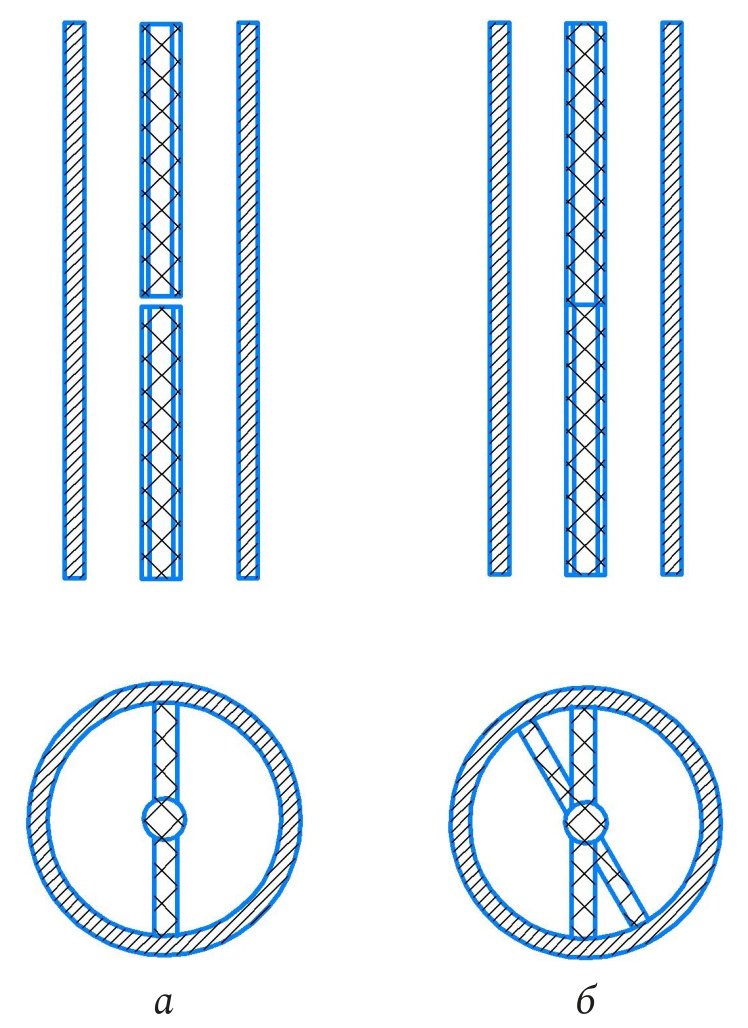 Рис. 3. Исследуемые в работе нерегулярности: а – зазор в волноведущем тракте; б – поворот плоскости поляризации