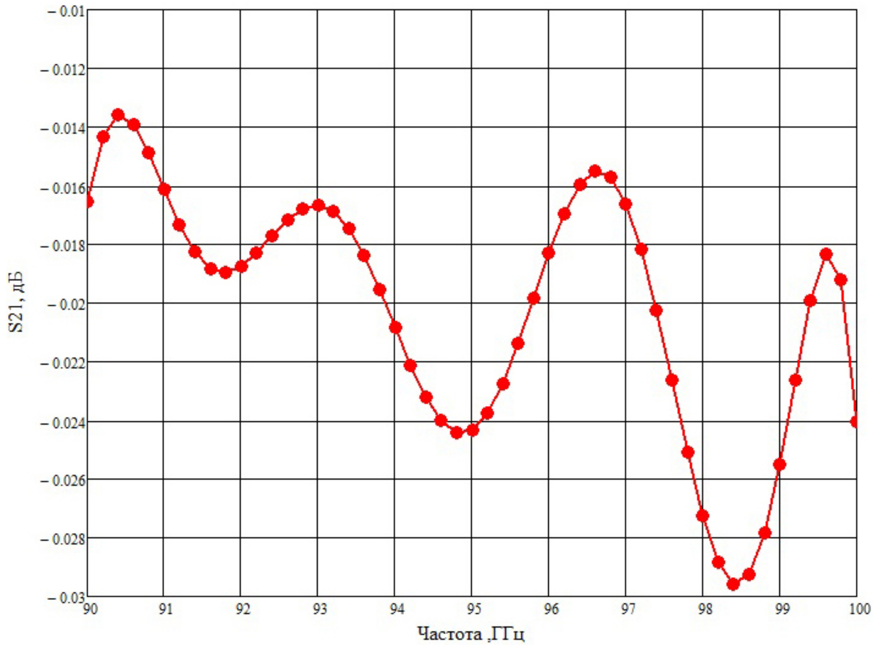 Рис. 4. Передаточная характеристика исследуемой волноводной линии без нерегулярностей