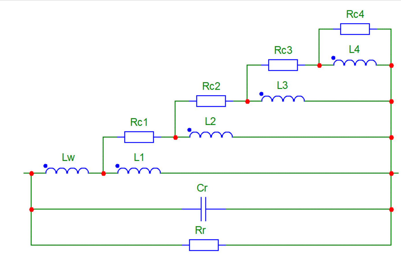 Fig. 14. Inductor equivalent circuit taking into account the wire parameters