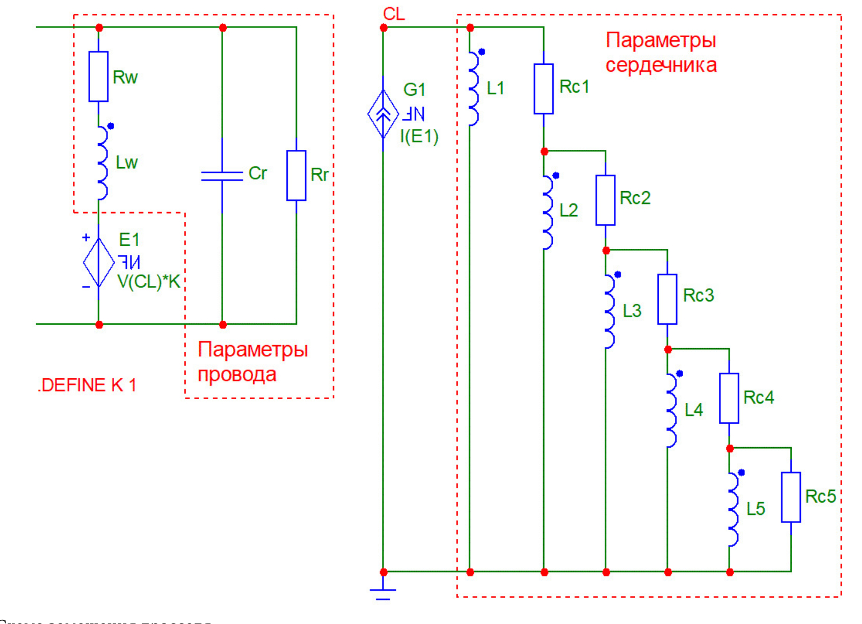 Рис. 14. Схема замещения дросселя с учетом параметров провода