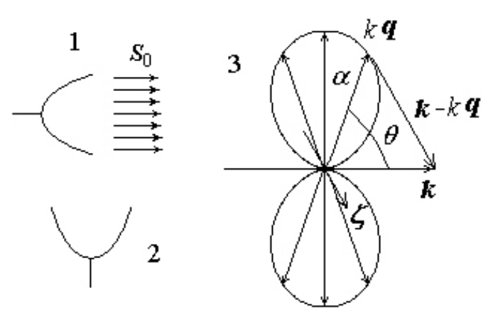 Пусть – угол рассеяния между волновым вектором k падающей электромагнитной волны и направлением q рассеянной волны, рис. 2. Тогда из равнобедренного треугольника