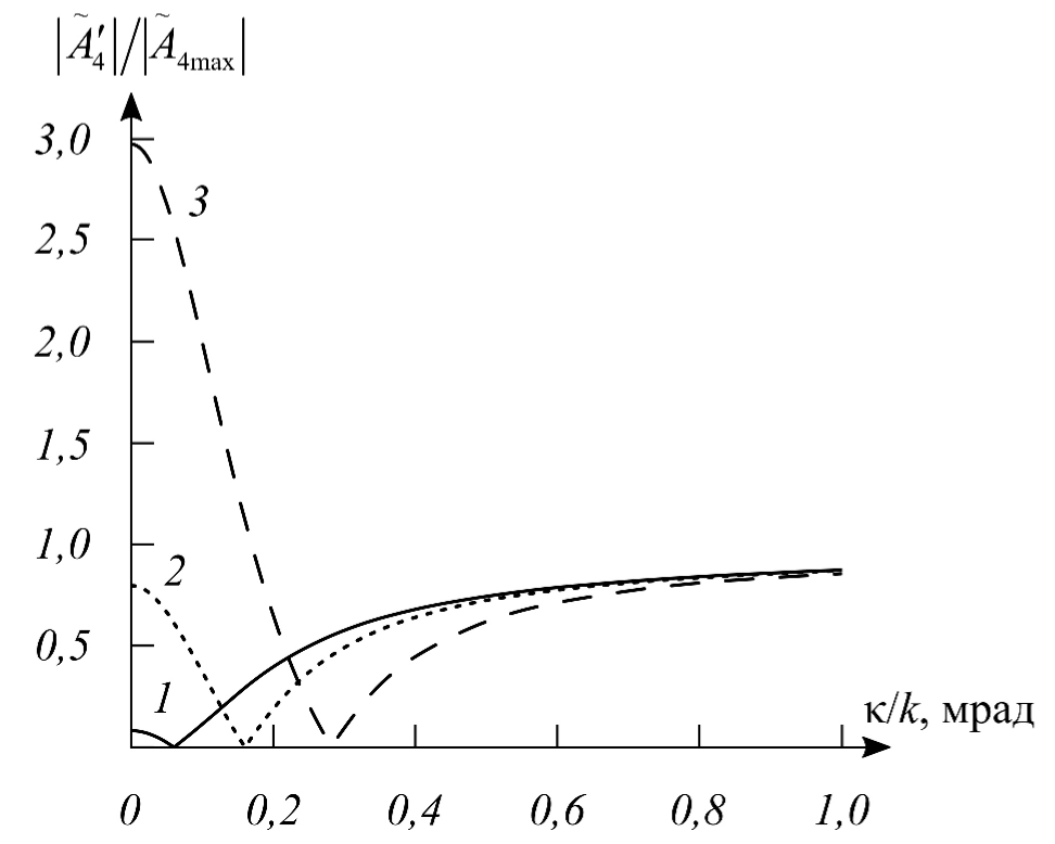 For a nonlinear medium containing nanoparticles, for which the condition is met, the modulus of the spatial spectrum of the object wave has the form of a cutout ring with a diameter of (Fig. 1, curve 2). In this case, the spatial selectivity of FRC can be characterized by the radius and width of the ring Δκ1, determined using the following equation [16; 17]: