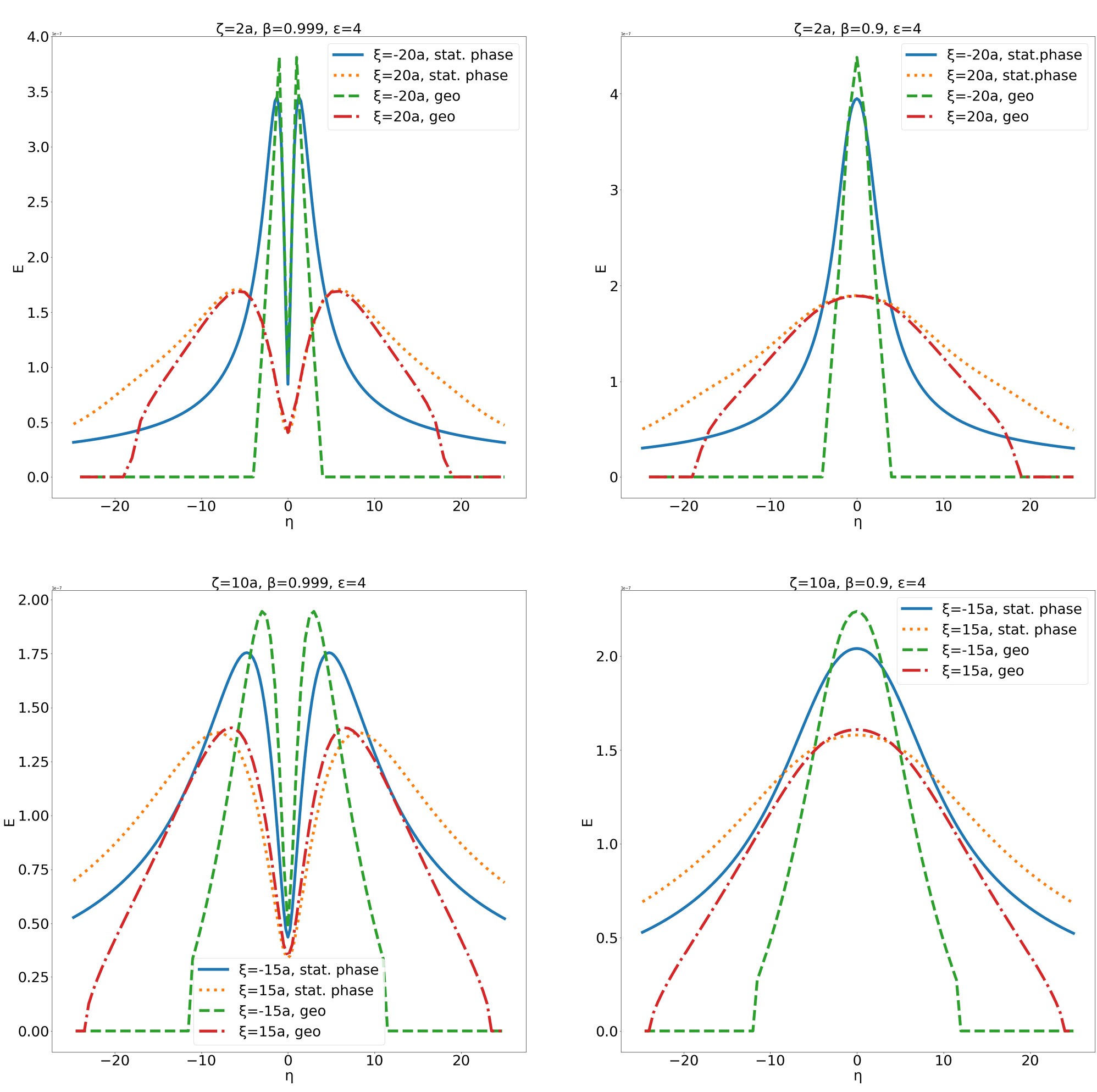 Рис. 3. Сравнение результатов, полученных методом стационарной фазы и методом геометрической оптики, для Фурье-образа электрического поля в для призмы с параметрами: нКл,
