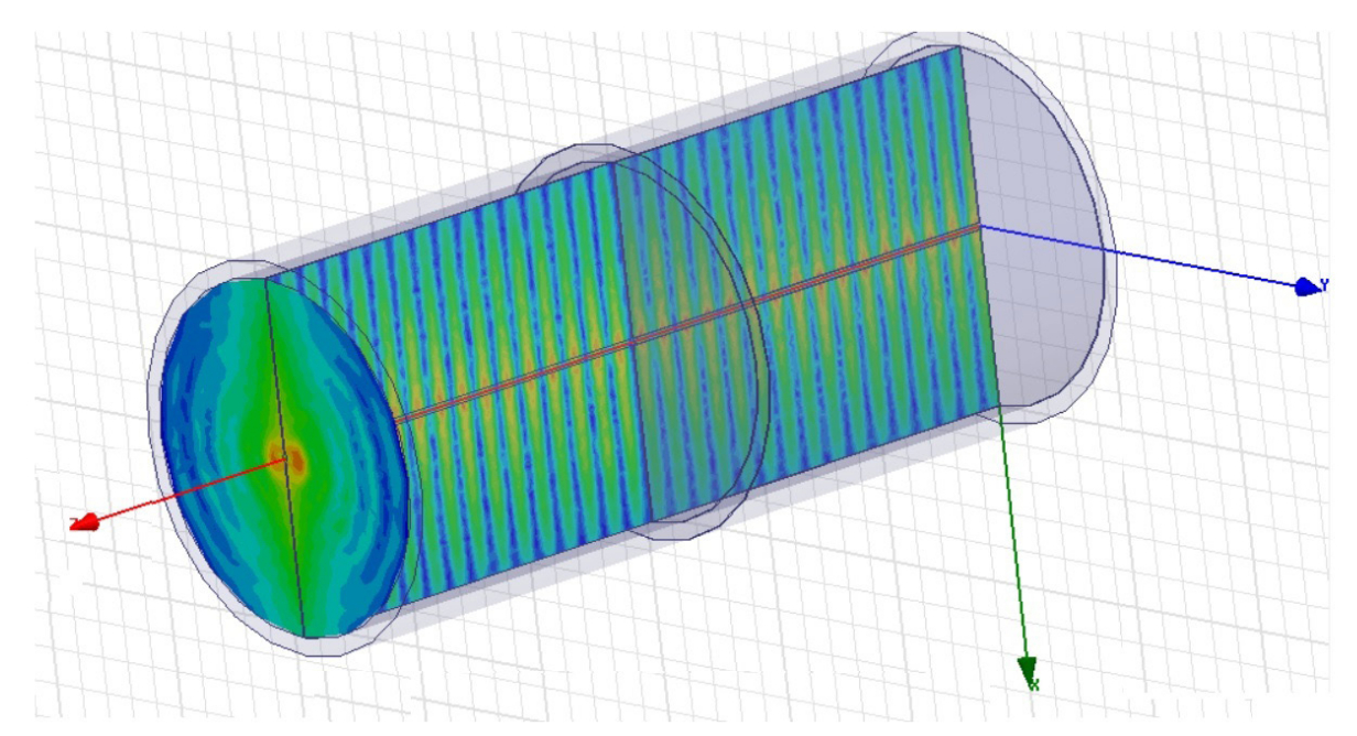 Рис. 2. Распределение поля в металлодиэлектрическом волноводе на частоте 93 ГГц