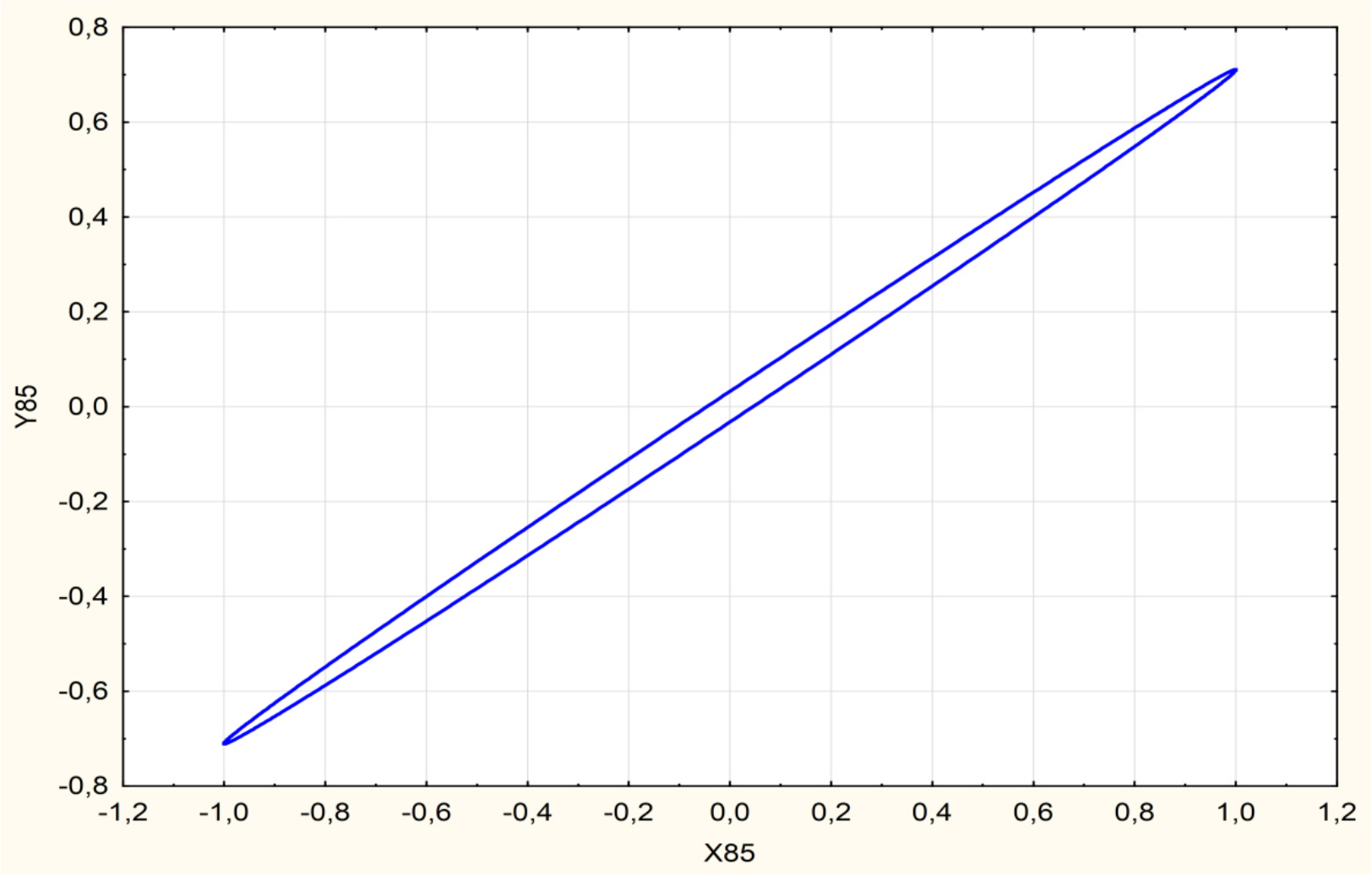 Pic. 5. Shape of the polarization ellipse of reflected radiation – right-handed elliptical polarization =1028, =−1580, =°10 w=655 сm