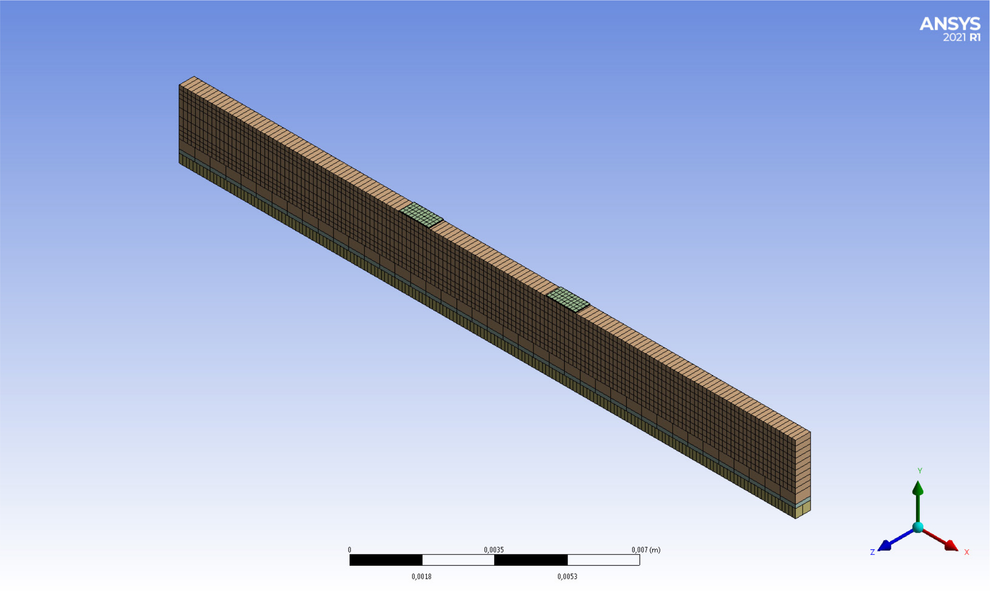 В [6; 7] было показано, что даже для одиночного ПП система уравнений теплопроводности будет достаточно сложной. Для двух ПП она будет еще сложнее. Решать такую задачу аналитически нецелесообразно. Для ее решения использовался конечно-элементный метод, реализованный в программе ANSYS 2020 R1 и ANSYS 2021 R1, модуль Steady-State Thermal. Проведение работы пришлось на период обновления программного обеспечения, поэтому использовались две версии.