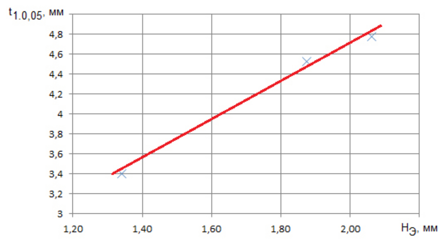 Fig. 9. Dependence of t1.0,05 on НЭ