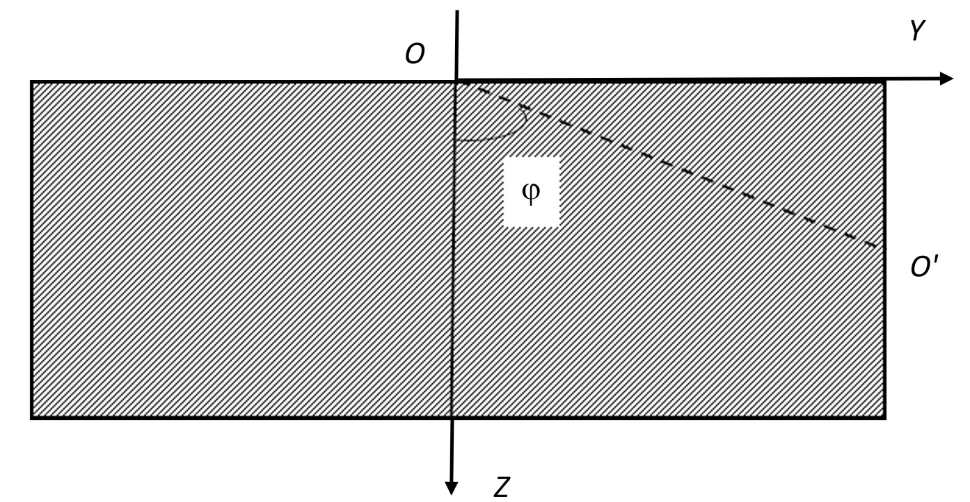 Обозначим значение тензора диэлектрической проницаемости кристалла вдоль оптической оси в главной системе координат, а – в перпендикулярном направлении. Тогда в лабораторной системе координат YOZ компоненты тензора диэлектрической проницаемости будут иметь вид: