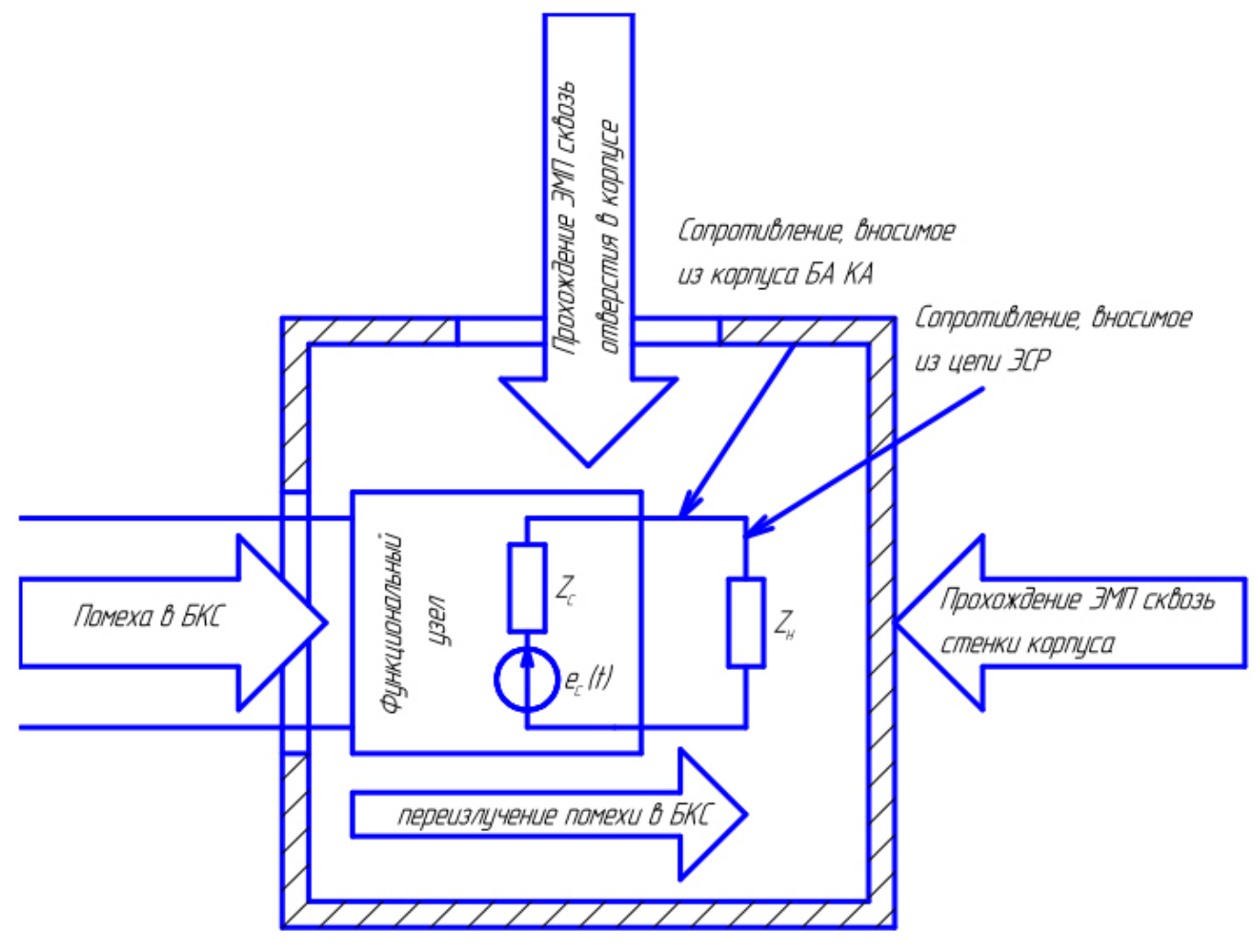 Рис. 4. Схема (физическая модель) формирования помех в цепях бортовой аппаратуры КА