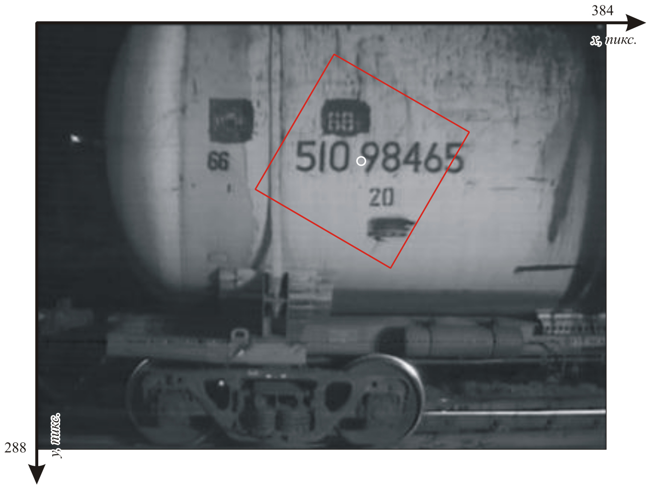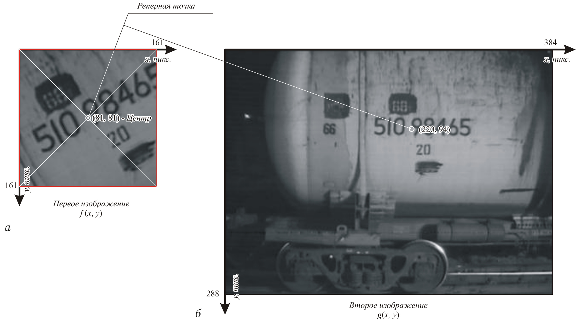 На рис. 1 показано изображение, полученное от системы технического зрения, контролирующей подвижной состав. Из исходного изображения g(x, y) (см. рис. 1, б) был взят фрагмент и преобразован в соответствии с параметрами: