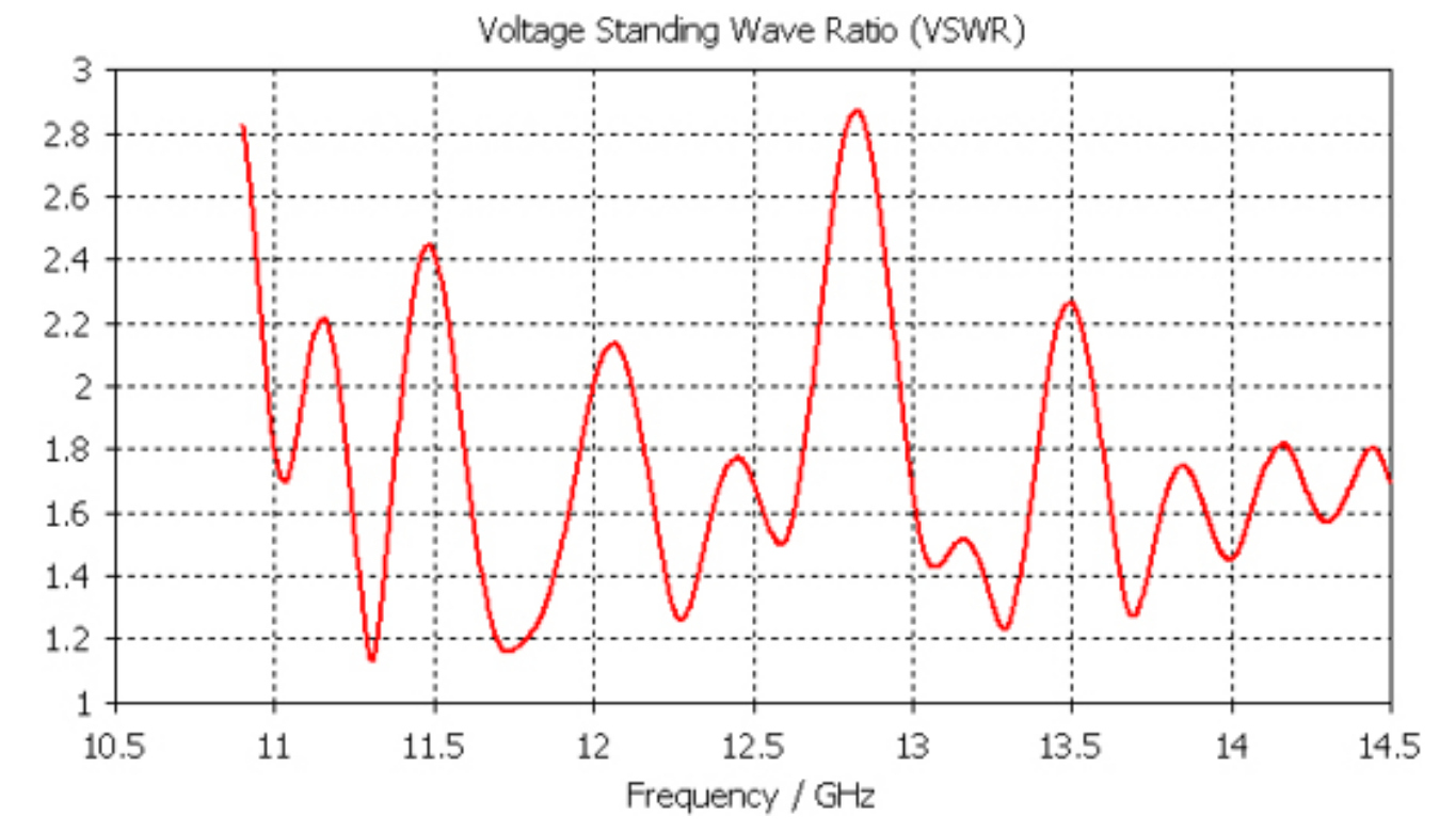 Рис. 4. Частотная зависимость коэффициента стоячей волны на входе антенной решетки