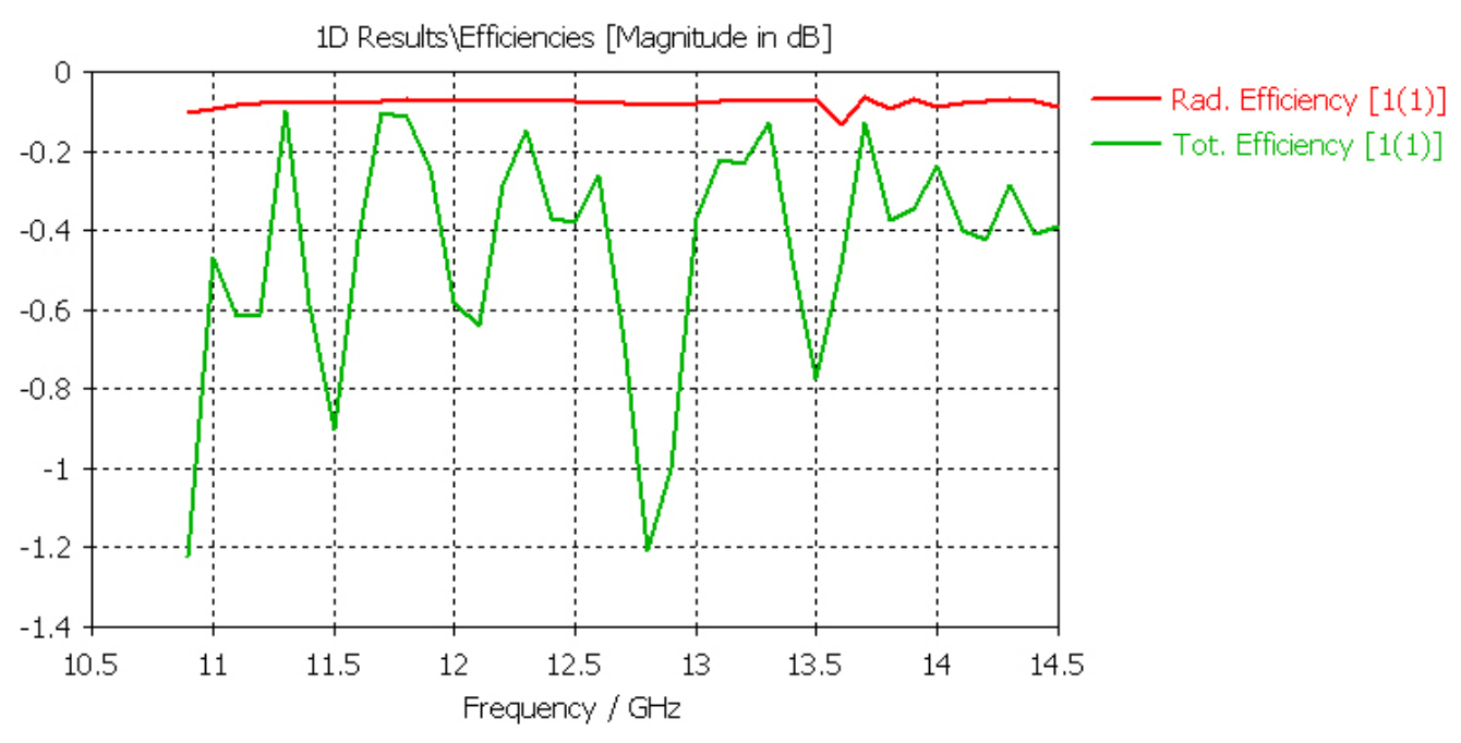 Рис. 13. КПД ФАР при отклонении луча на угол 45° от нормали, дБ