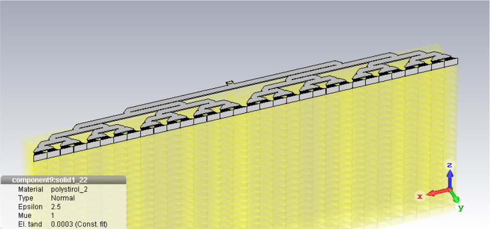 - Изготовление делителя мощности с использованием SIW-технологии на базе стандартных СВЧ-ламинатов. Использование металлизированных сквозных отверстий для согласования делителей мощности. Антенные элементы и коаксиально-волноводные переходы изготавливаются путем штамповки из полистирола, или печати на 3D-принтере из полистирола, далее – полировка, напыление слоя меди и гальваническое покрытие слоем меди.