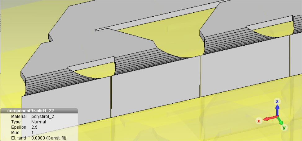 Рис. 10. Фрагмент диэлектрического заполнения делителя мощности и рупорных излучателей