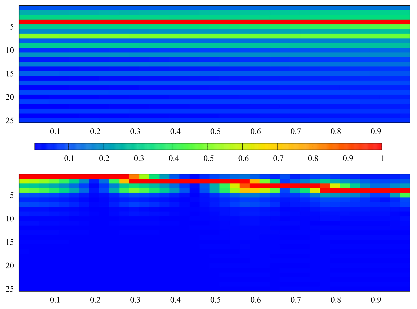 Fig. 7. Spectrograms: top – bottom – abscissa axis – ordinate axis – index of the vector element