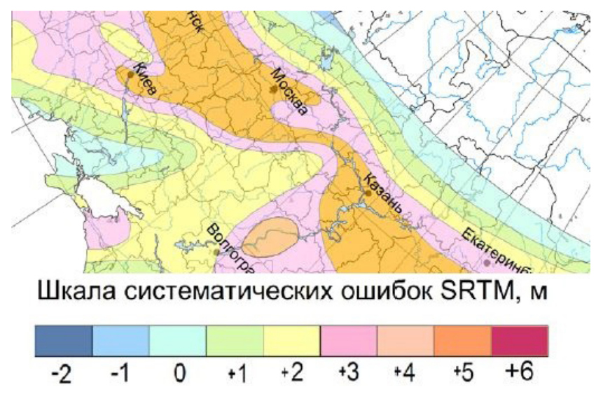 Fig. 1. Fragment of the map of zonality of systematic errors on the SRTM height matrix with an accuracy of up to 3 arc seconds (or approximately 90 × 90 m) within the territory of Northern Eurasia