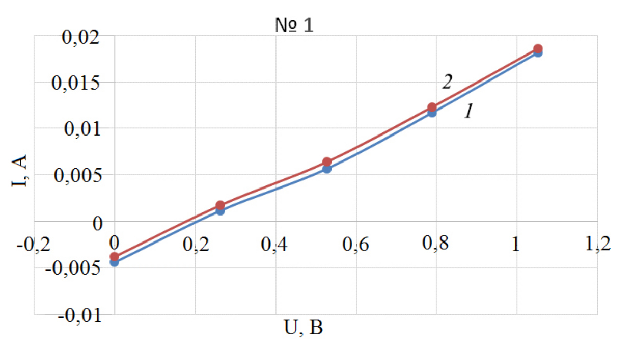 Для оценки влияния квантовых точек на электрические характеристики солнечных элементов с пористым кремнием были сняты показания тока при контролируемом повышении напряжения.