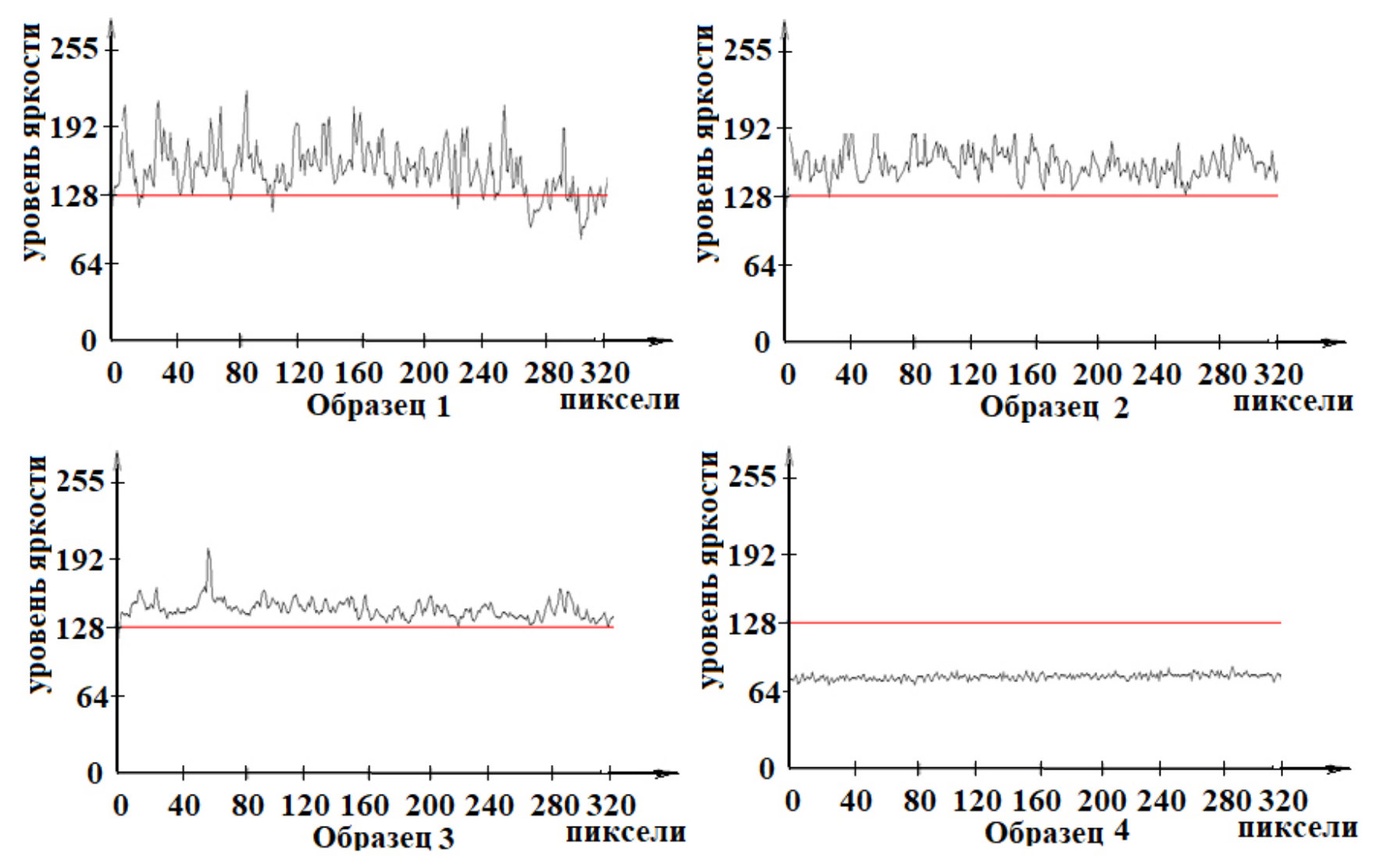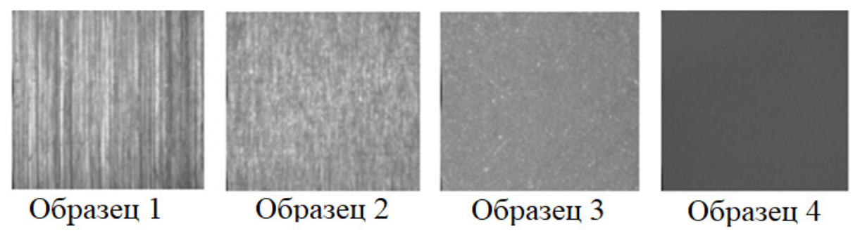 Полученные изображения исследуемых микрорельефов поверхностей эталонных образцов с помощью ОЭИК приведены на рис. 1. При этом микрорельеф образцов 1 и 2 был сформирован шлифованием, а микрорельеф образцов 3 и 4 ‒ полированием.