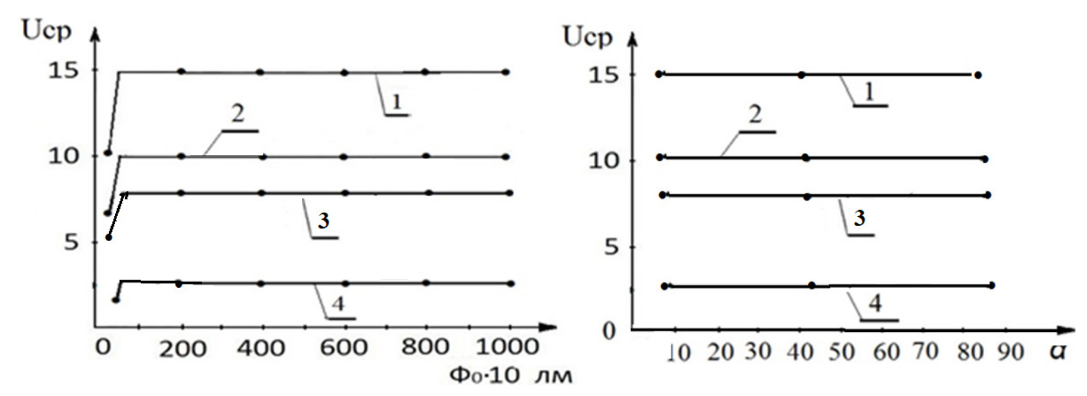 Для подтверждения этого вывода в работе были выполнены исследования влияния мощности опорного светового потока на Uср. Результаты выполненных исследований представлены на рис. 3.