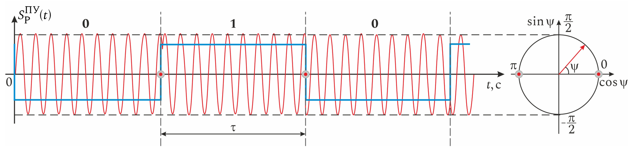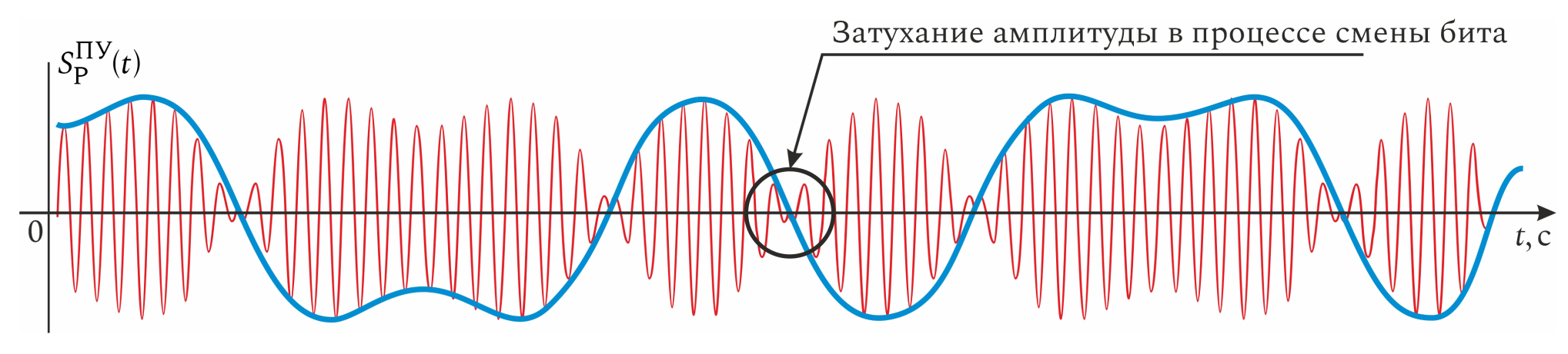 где – амплитуда сигнала; – несущая частота; – изменение фазы в соответствии с модулирующим сигналом.