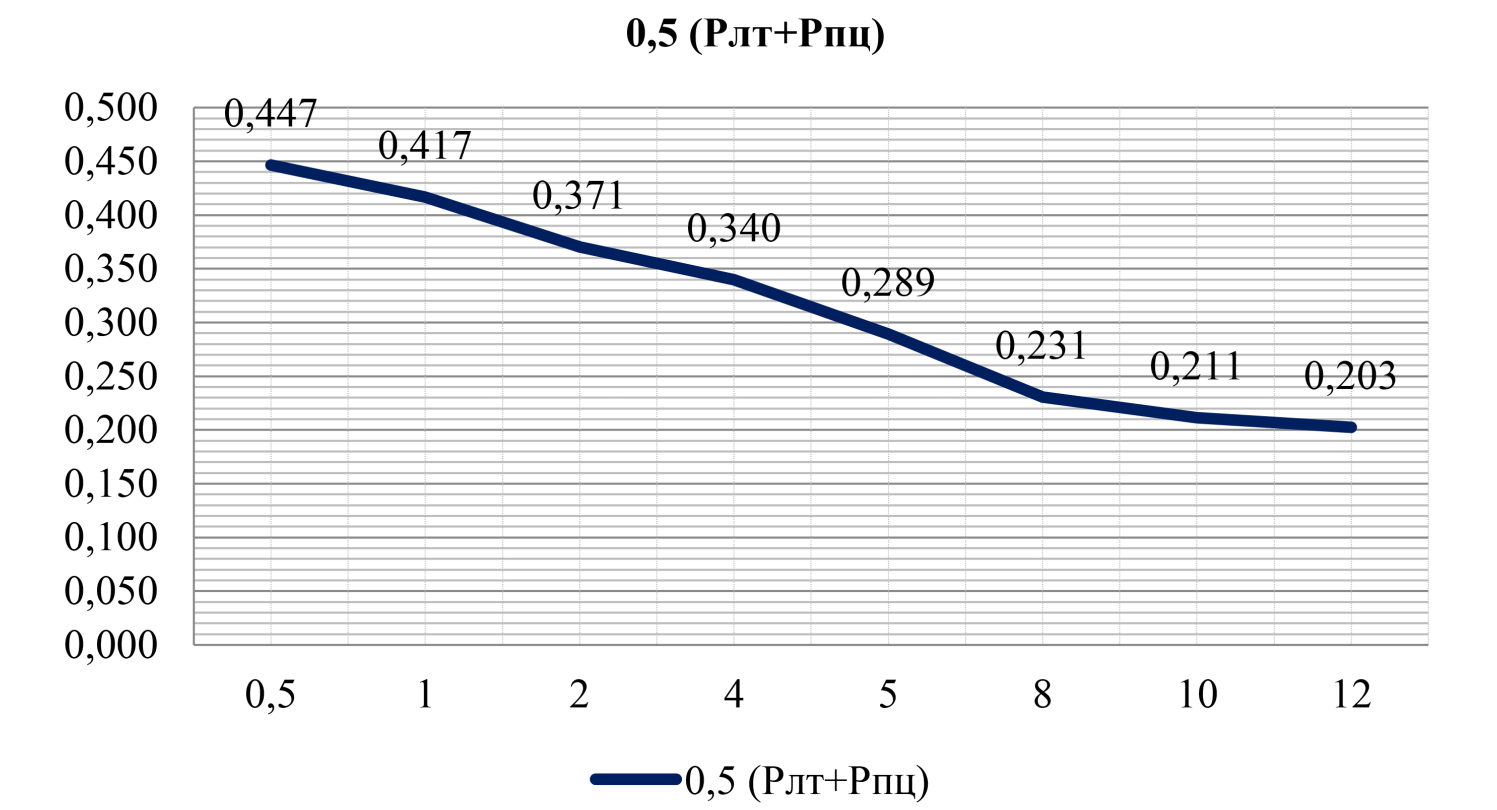 В работе [1] рассмотрено применение УЭД для обнаружения сигнала, удовлетворяющего условиям (1): по обоим вариантам истинности гипотез H0 и H1 принимаемый сигнал является гауссовским, и для каждого вторичного отличается только дисперсией: по гипотезе H0 дисперсия равна σn2, а по гипотезе H1 дисперсия равняется σs2+σn2. После некоторых алгебраических преобразований в [1] получены выражения для Y – плотности случайной величины на выходе УЭД (Y=yiρ) по гипотезам H0 и H1 проинтегрировав которые получают согласно [3, (13) и (14)], что соответствует в (2) Pлт – вероятности «ложной тревоги» и в (3) Pпц – вероятности «пропуска цели»: